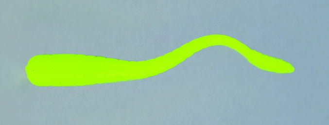 Korpus składa się z głowy o średnicy 5 mm, która w wodzie natychmiast zamienia się w długi, bardzo kręty ogon. Ta przynęta przeskakiwana między kamieniami lub używana w rotacji ma całkowicie unikalny i bardzo atrakcyjny ruch.