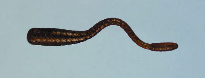 Korpus składa się z głowy o średnicy 5 mm, która w wodzie natychmiast zamienia się w długi, bardzo kręty ogon. Ta przynęta przeskakiwana między kamieniami lub używana w rotacji ma całkowicie unikalny i bardzo atrakcyjny ruch.