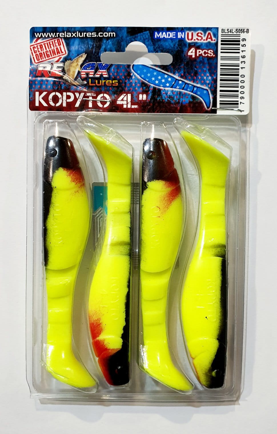 Kopyto 4L to wyjątkowo gruba przynęta miękka. Zaprojektowana do łowienia w zbiornikach z wodą stojącą lub łowiskach z wolno płynącą. Budowa sprawia, że przynęta dąży do nurkowania, co działa nęcąco na ryby drapieżne.