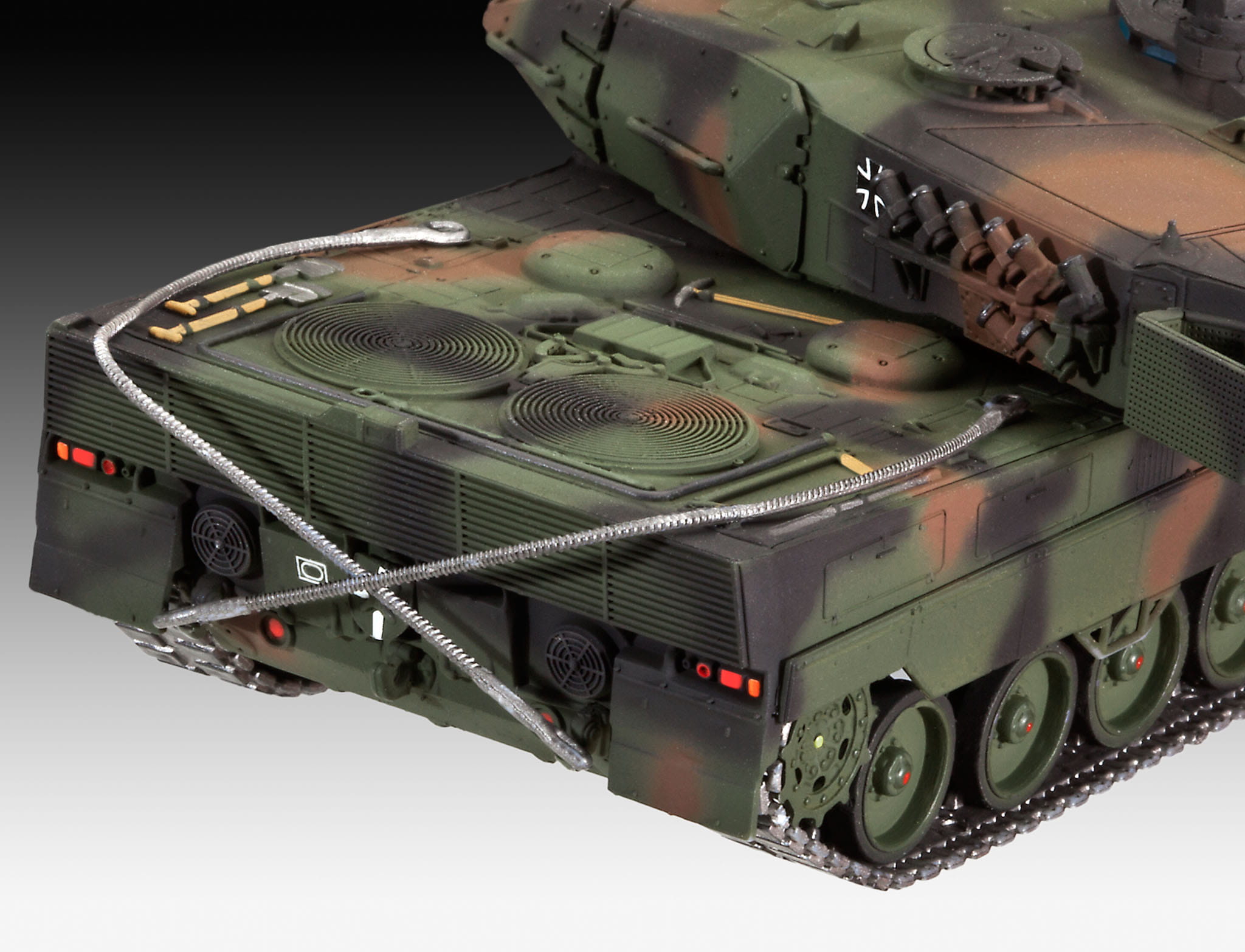 Od czasu wprowadzenia na rynek w 1979 roku czołg Leopard 2, często nazywany najlepszym na świecie, był wielokrotnie modernizowany i dostosowywany. Najnowsza wersja Leoparda 2A6M ma dłuższe działo pokładowe (L55) i ulepszoną ochronę przeciwminową. Oprócz Niemiec z Leoparda 2 korzysta kolejne 15 krajów, w tym Kanada w Afganistanie. Model oferuje wybór pomiędzy A6 i A6M (dodatkowa płyta przeciwminowa). Struktury powierzchni zawierają wszystkie detale, w tym filigranową powłokę antypoślizgową. Cechą szczególną modelu jest wygięty dwuczęściowy łańcuch. Zapewnia to jeszcze bardziej autentyczny wygląd.