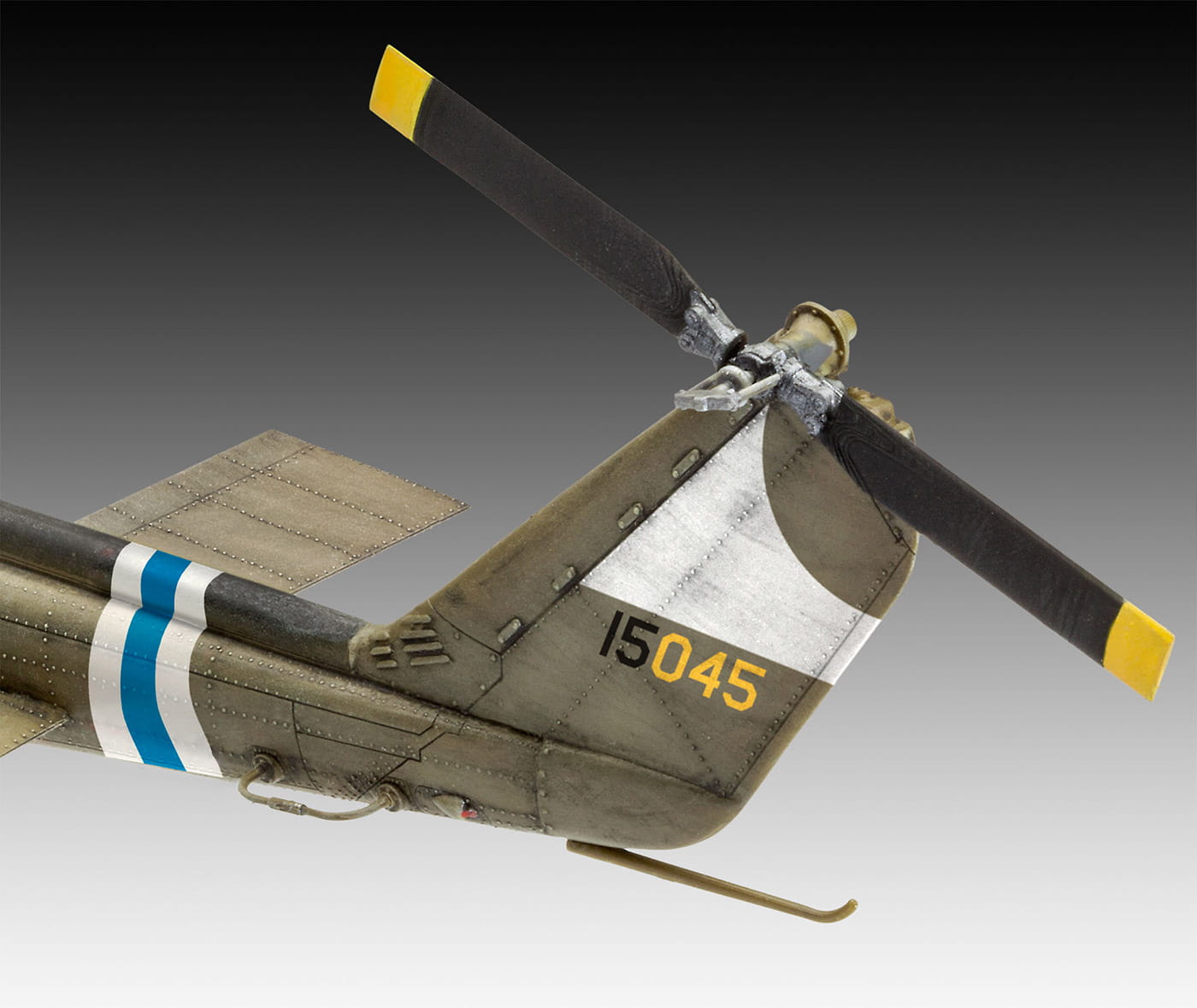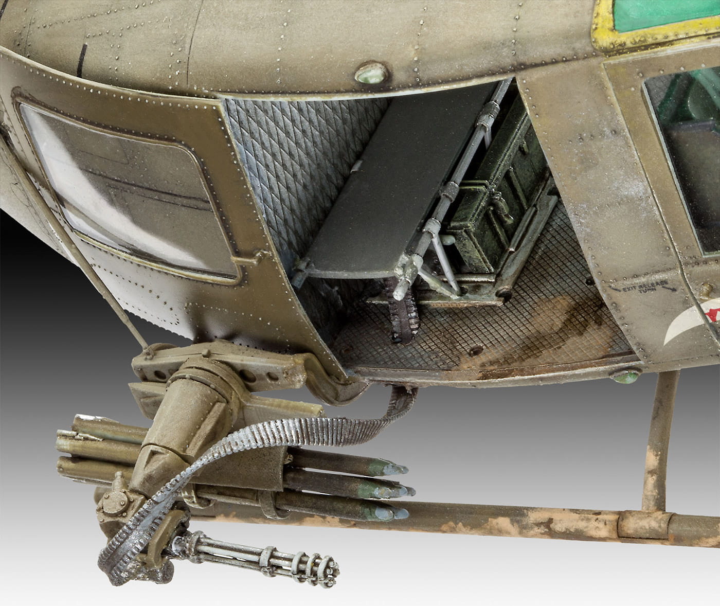 Model legendarnego Bell UH-1C, który z ciężkimi karabinami maszynowymi i bocznymi zasobnikami rakiet stał się przerażającym i bardzo skutecznym śmigłowcem bojowym podczas wojny w Wietnamie.