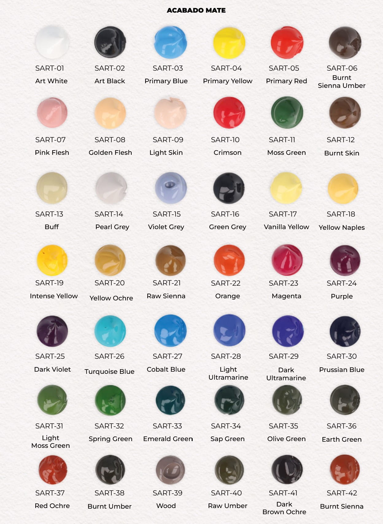 Farby z tej serii mają matowe wykończenie, ale farby nadal zachowują intensywność kolorów po wyschnięciu. Inki mają lekko matowe wykończenie i doskonałą intensywność kolorów.