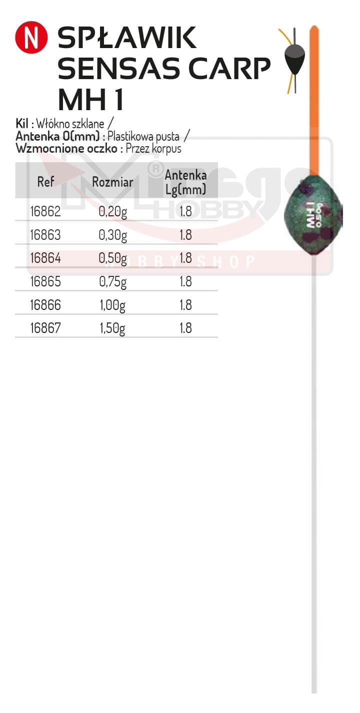 SENSAS SPŁAWIK CARP Magic Hybrid MH 1 0.30g - CZERWONA antenka [16863]