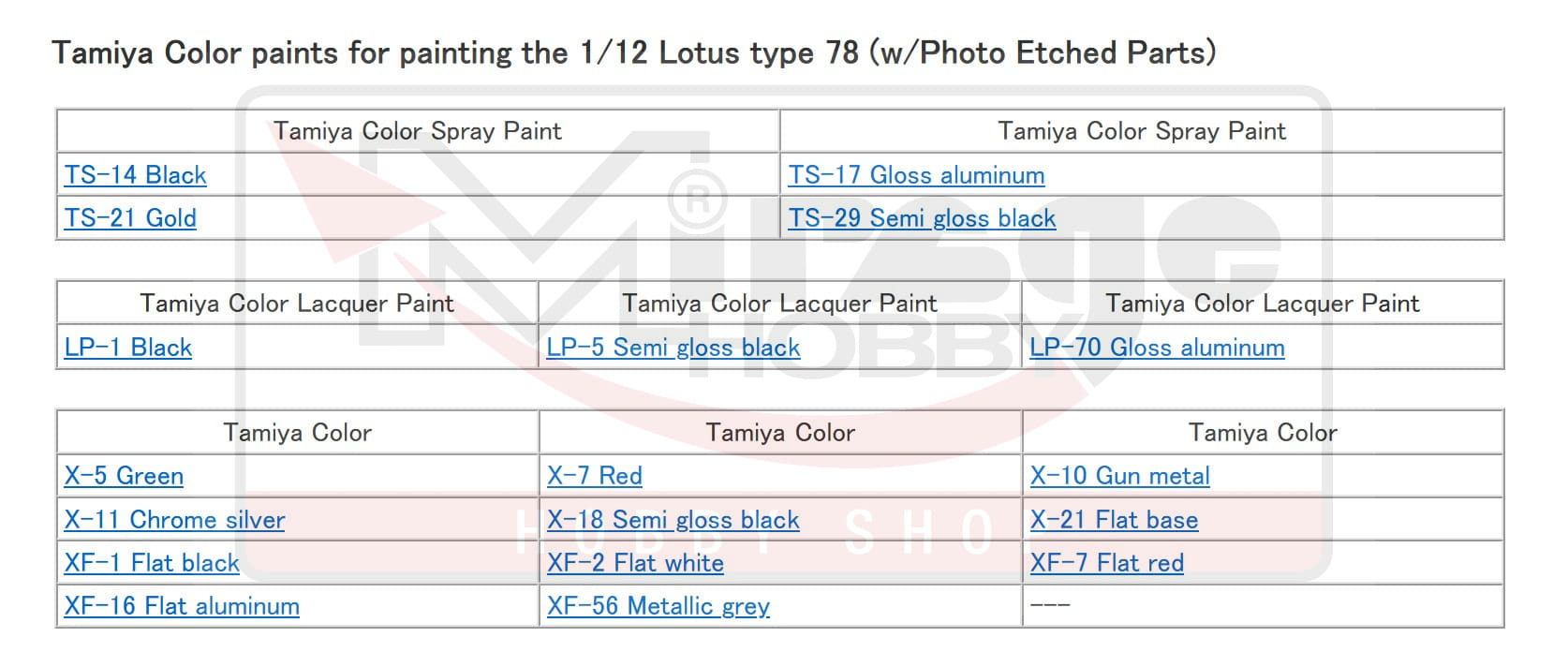 TAMIYA 12037 1:12 Lotus type 78 (w/Photo Etched Parts)
