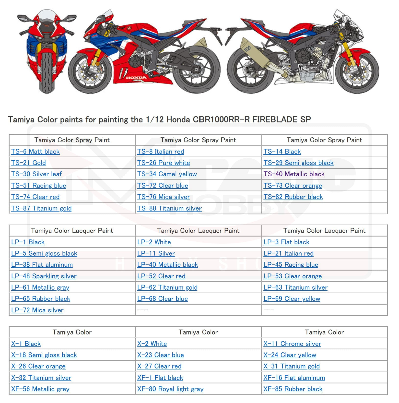 TAMIYA 14138 1:12 Honda CBR1000RR-R FIREBLADE SP