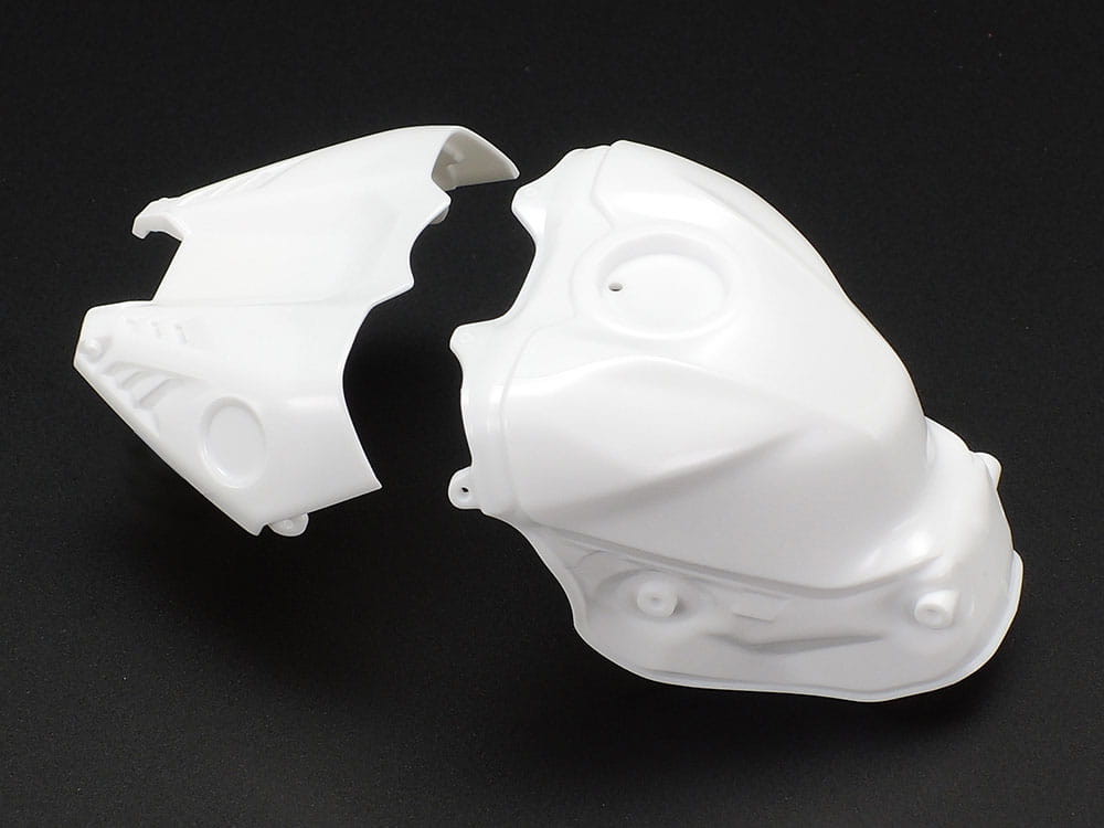 - Dopracowana aerodynamicznie forma motocykla jest stylowo uchwycona, w tym renderingi wewnętrznych wingletów w bocznych owiewkach