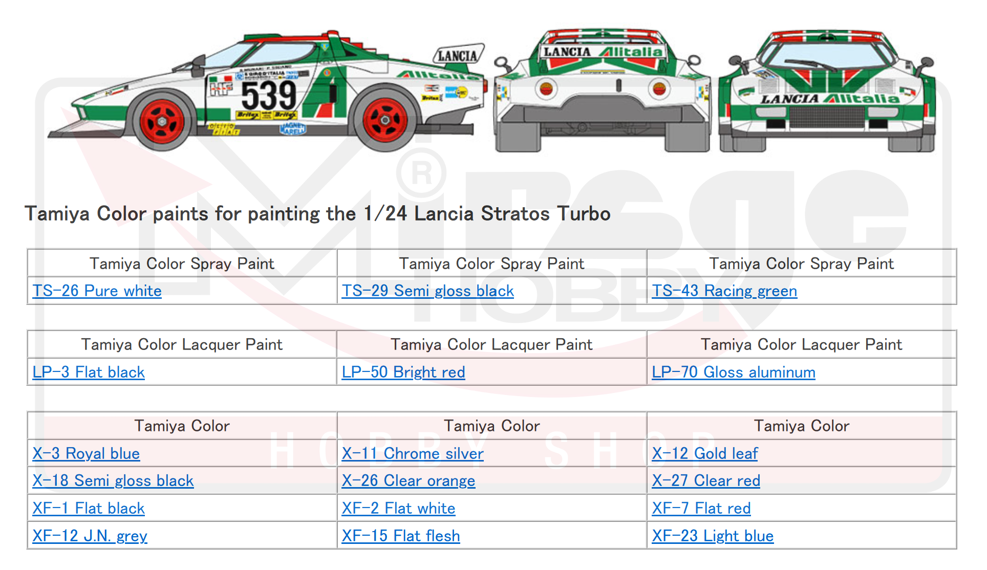 TAMIYA 25210 1:24 Lancia Stratos Turbo