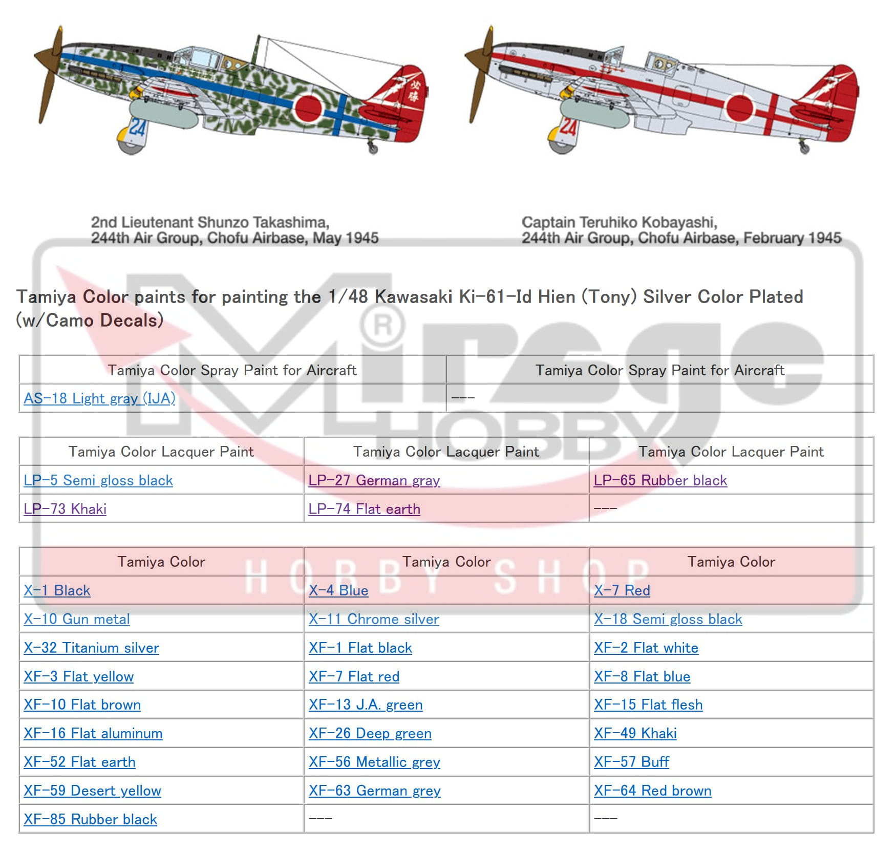 W rzeczywistości, z 1360 egzemplarzami, był to najliczniej produkowany wariant Hien; jego doskonałe osiągi na większych wysokościach oznaczały, że często otrzymywał krótki rozkaz walki z nadlatującymi amerykańskimi bombowcami B29 na niebie wokół rodzimych wysp Japonii. Jedną z jednostek IJA, która w szczególności rozmieściła Hien, była 244. Grupa Powietrzna dowodzona przez kapitana Teruhiko Kobayashiego. Ten model ma elementy w kolorze srebrnym i naklejki z wzorem kamuflażu, które pomagają w jego wykończeniu.