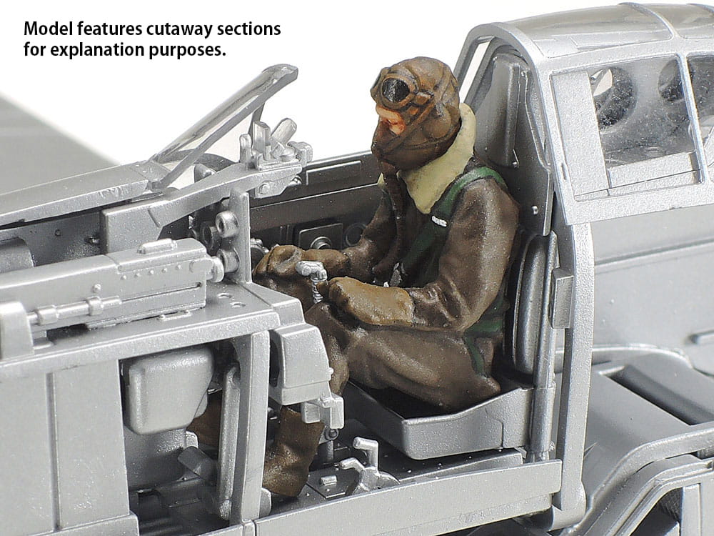 - W zestawie dwa zbiorniki zrzutowe, kalkomanie kamuflażu, siedząca figurka pilota i dwie opcje oznaczania.