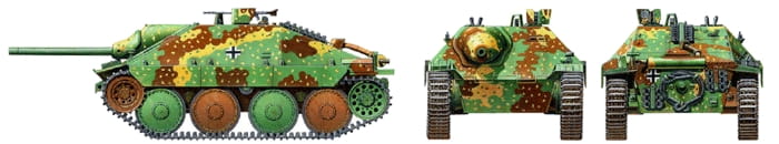 Otoczony pochyłym pancerzem ze wszystkich czterech stron, Hetzer charakteryzował się zwartą i niską stylistyką, nadającą mu agresywny wygląd. Obsadzony przez czteroosobową załogę, Hetzer był wyposażony w działo 75 mm L/48 zamontowane na stałe. Czas projektowania został zminimalizowany dzięki zastosowaniu komponentów z czeskiego 38(t), a łącznie od kwietnia 1944 do końca II wojny światowej wyprodukowano ponad 2800 modeli. Służąc jako główny niszczyciel czołgów drugiej połowy II wojny światowej, Hetzer był widziany zarówno na froncie wschodnim, jak i zachodnim.