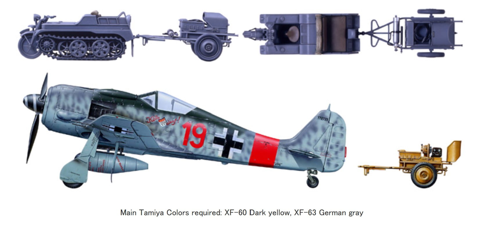 Ten zestaw doskonale nadaje się do wyświetlania obok modeli samolotów, ponieważ zawiera niemiecki Kettenkraftrad z II wojny światowej z zasilaczem używanym w samolotach Luftwaffe.