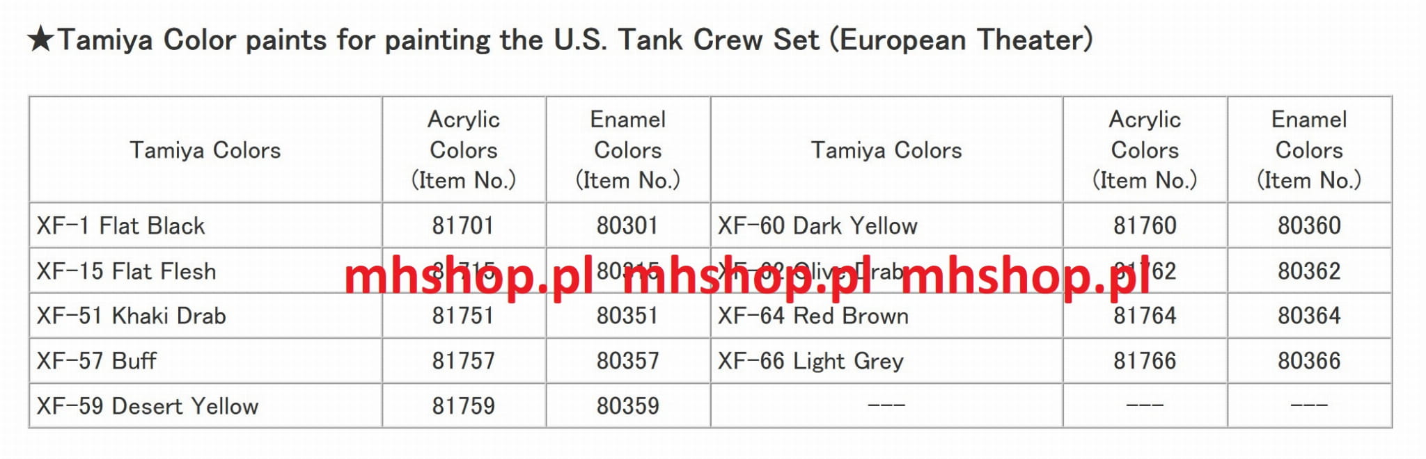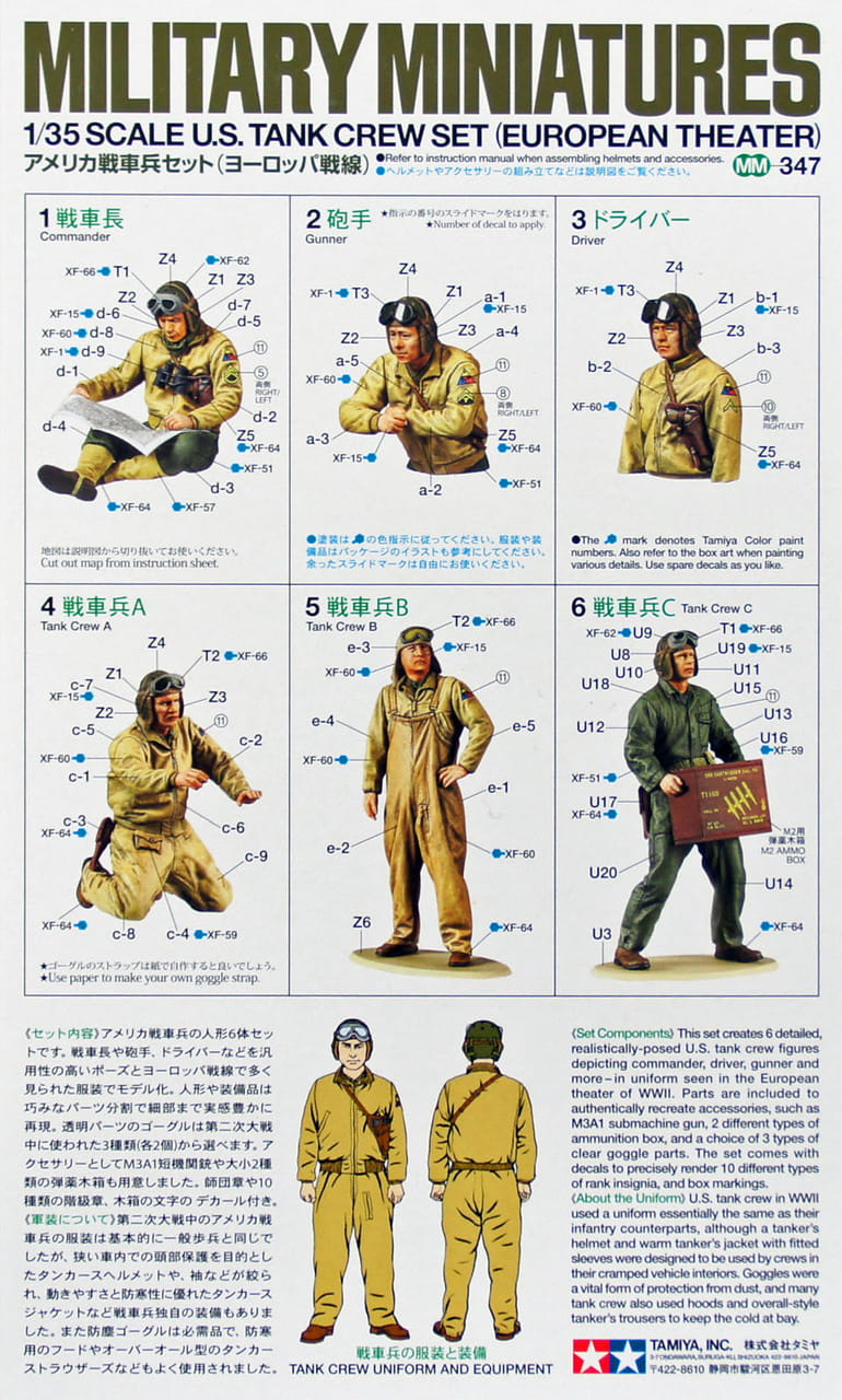 Ten elastyczny zestaw sześciu figurek w skali 1/35 jest idealny do użytku z modelami amerykańskich czołgów Tamiya z II wojny światowej, takimi jak M4A3E8 Sherman „Easy Eight” (Teatr Europejski).
