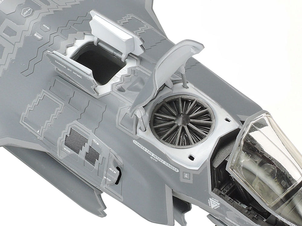 - Sekcje mechaniczne, takie jak wentylator podnośnika, silnik F135-PW-600 i kanał wlotowy powietrza są realistycznie uchwycone przez oddzielne części.