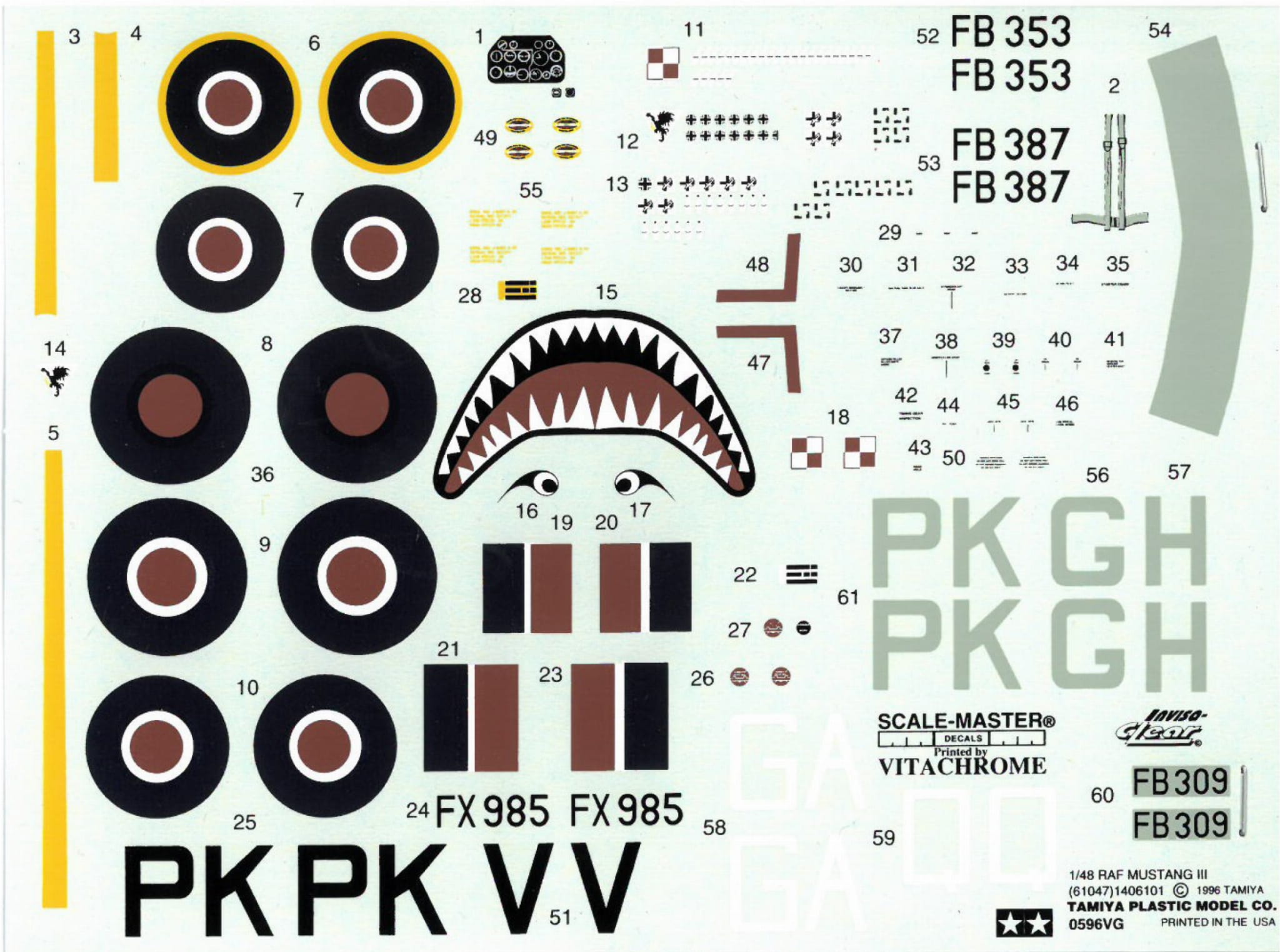 Uważany przez wielu za najlepszy amerykański samolot myśliwski II wojny światowej, P-51 Mustang był w rzeczywistości projektem, który pierwotnie był przeznaczony dla brytyjskich Królewskich Sił Powietrznych. P-51B został oznaczony jako Mustang III w służbie RAF i ten zestaw przedstawia właśnie taki samolot. Dołączone części przedstawiają zarówno oryginał, jak i baldachimy Malcolma Hooda, dwie bomby 500 funtów i jedną figurkę pilota. W zestawie cztery opcje znakowania.