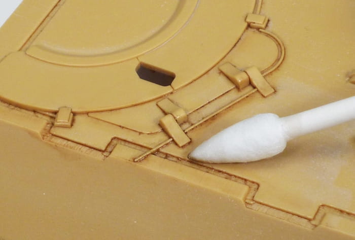 Plastikowe części mogą stać się kruche podczas stosowania akcentów kolorystycznych Tamiya Panel Line. Unikaj stosowania na ruchomych częściach i zachowaj ostrożność podczas nakładania na obszary nośne. Nakładać na warstwę bazową lakieru lub farby akrylowej. Farby w kolorze Accent Color mogą uszkodzić leżącą pod spodem warstwę bazową. Przetestuj przed nałożeniem go na model. Zachowaj ostrożność podczas nakładania na płaskie kolory lakieru bazowego, ponieważ farby Accent Color mogą łatwiej przenikać.