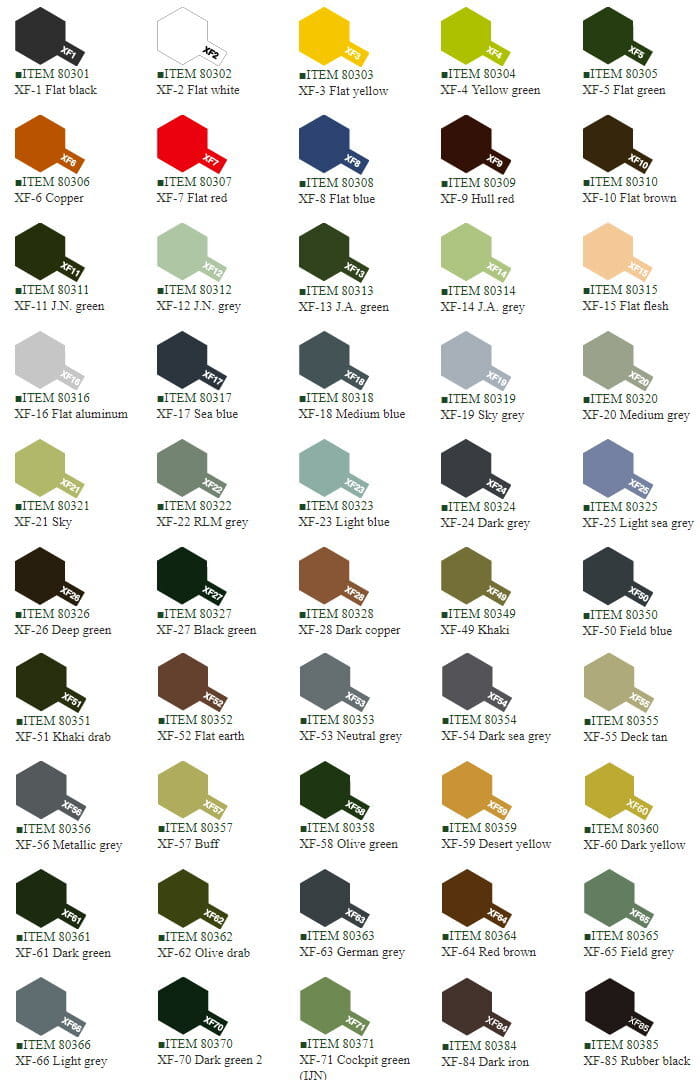 Farby emaliowane (olejne) Tamiya Color są używane do malowania pędzlem lub natryskiem i mogą być nakładane na prawie każdą powierzchnię drewna, metalu lub tworzywa sztucznego.