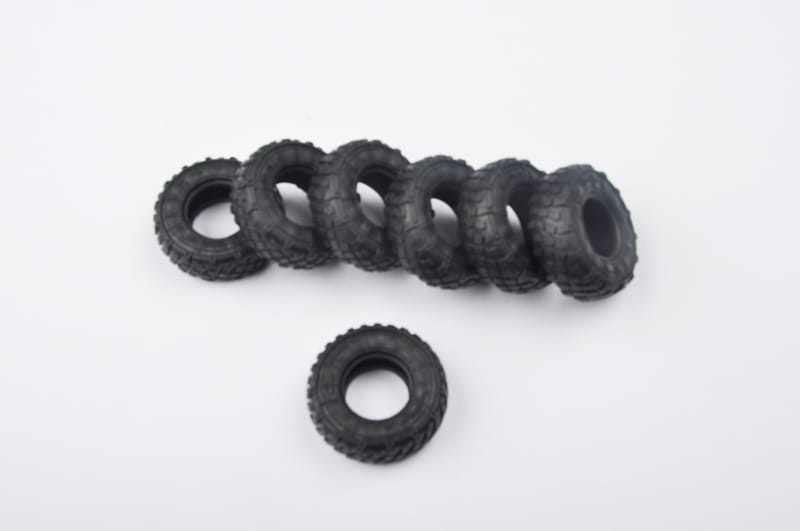 - Główne opony to wydrążona guma z bardzo dobrym bieżnikiem, a także detale ścian bocznych składające się z wypukłych żeber