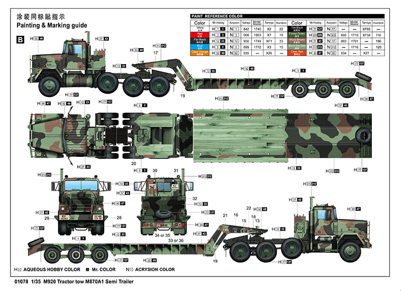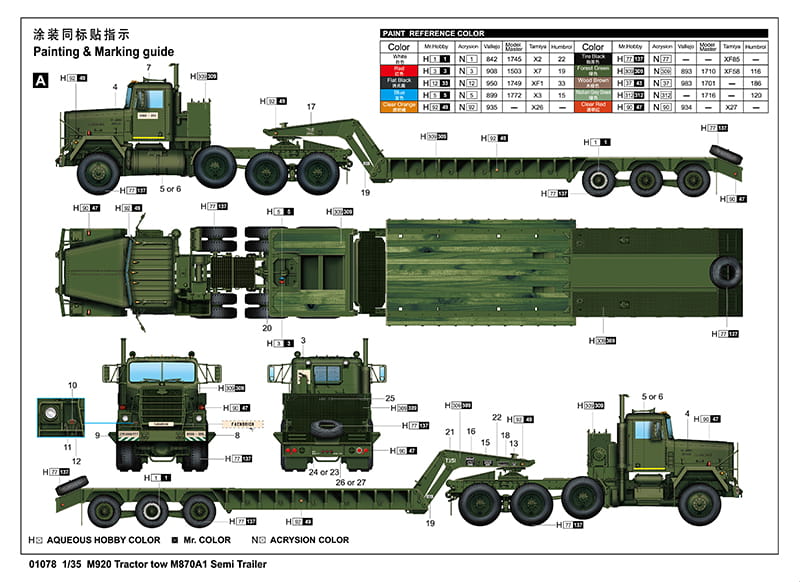 TRUMPETER 01078 1:35 M920 Tractor tow M870A1 Semi Trailer
