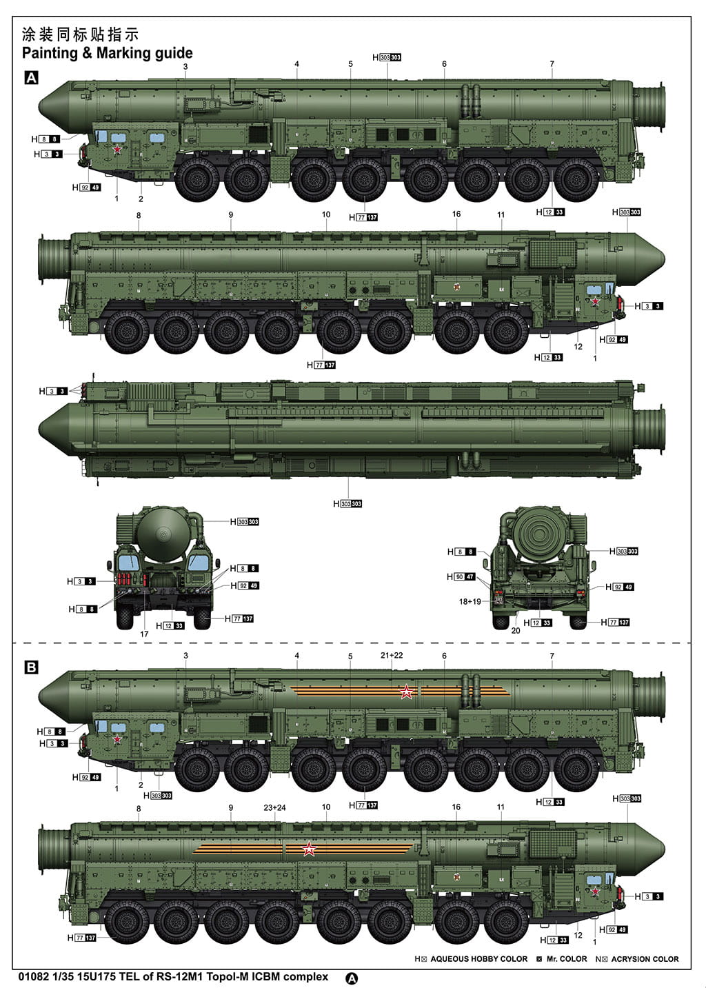 TRUMPETER 01082 1:35 15U175 TEL of RS-12M1 Topol-M ICBM complex