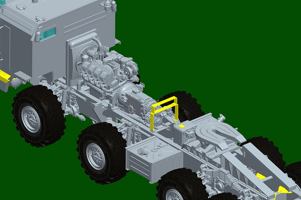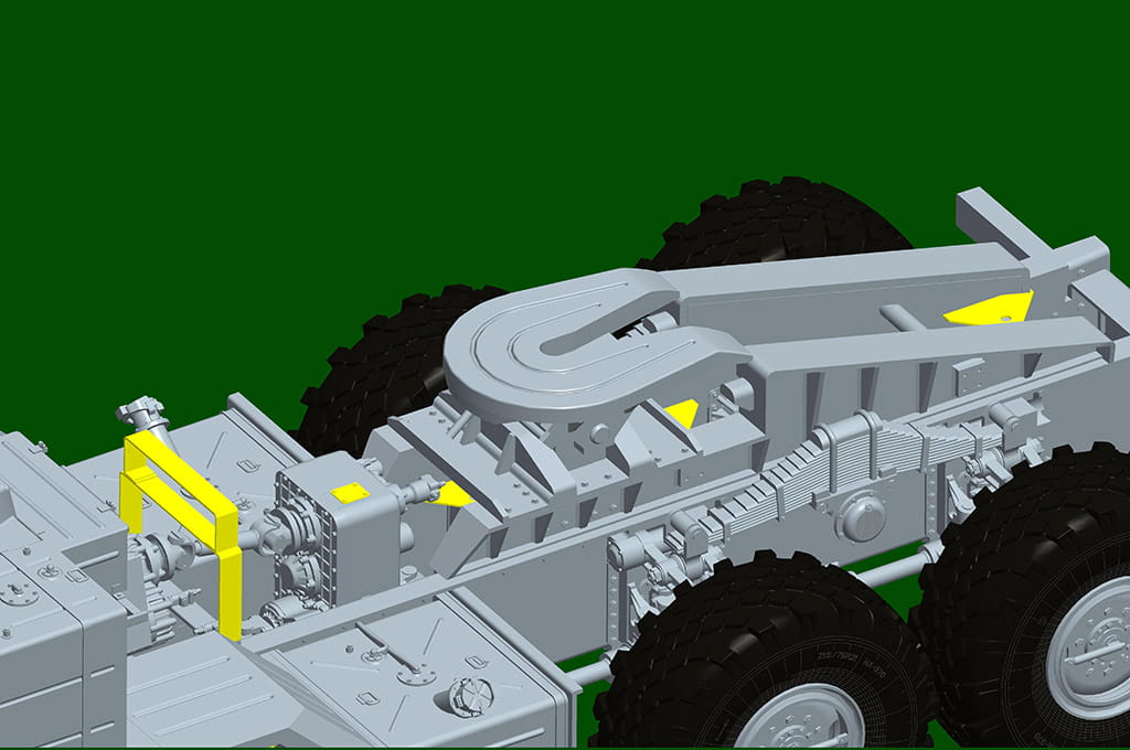 - Pełny zespół układu napędowego wraz z przekładnią silnika, obudową mechanizmu różnicowego i zespołami zawieszenia