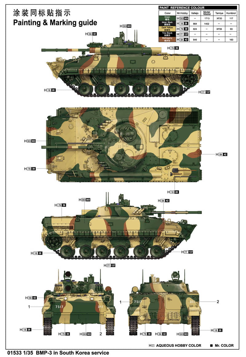 TRUMPETER 01533 1:35 BMP-3 in South Korea service