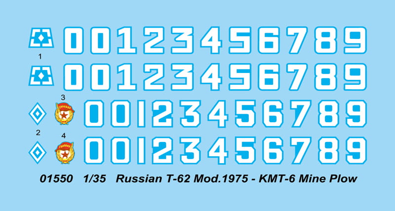 TRUMPETER 01550 1:35 Russian T-62 Mod.1975 (With KMT-6 Mine Plow)