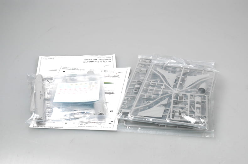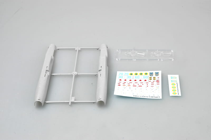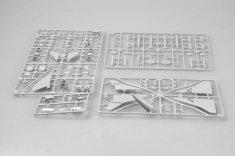 Jest 100 części z jasnoszarego plastiku, 6 przezroczystych części do kokpitu - Lewy i prawy kadłub są formowane ślizgowo z autentycznymi detalami.