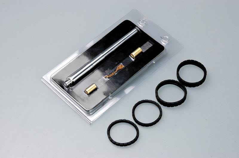 - Części metalowe - mosiężna rurka, toczona aluminiowa lufa pistoletu, łańcuch