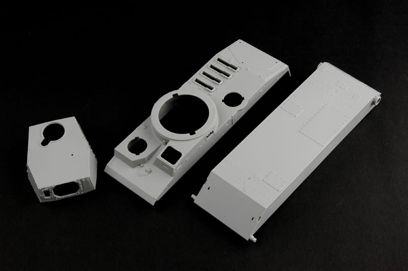 - kadłub dolny, górny i wieża formowane z wieloma slajdami