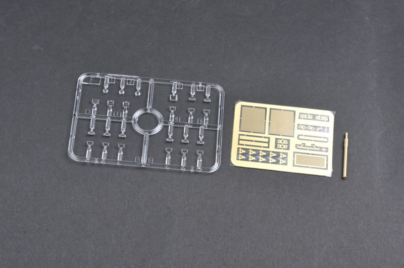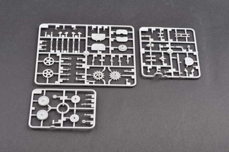 Łącznie 11 ramek, górny kadłub, dolny kadłub, wieżyczka i ogniwa gąsienic