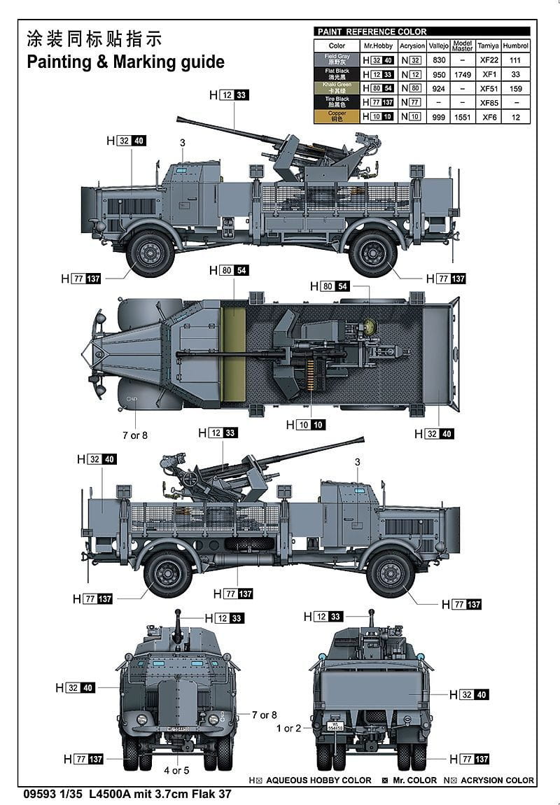 TRUMPETER 09593 1:35 German L4500A Mit 3.7cm Flak 37
