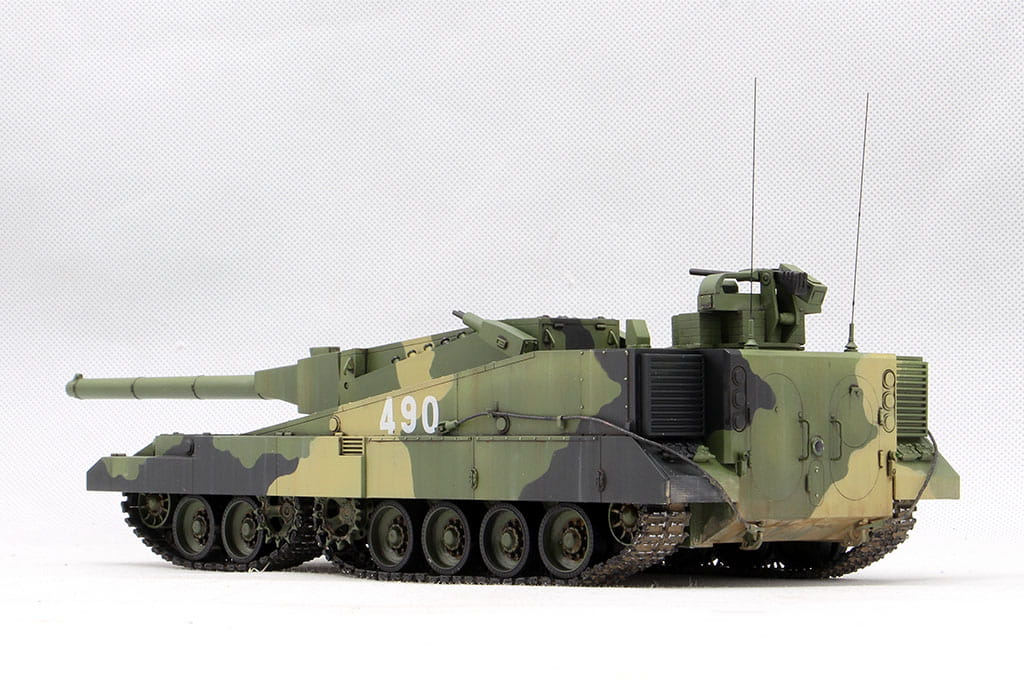 Obiekt 490B znacznie różnił się od pierwotnego projektu Obiektu 490A, miał wyjątkowo nachylony stalowy przedni pancerz zamiast pancerza kompozytowego i cztery zestawy gąsienic.
