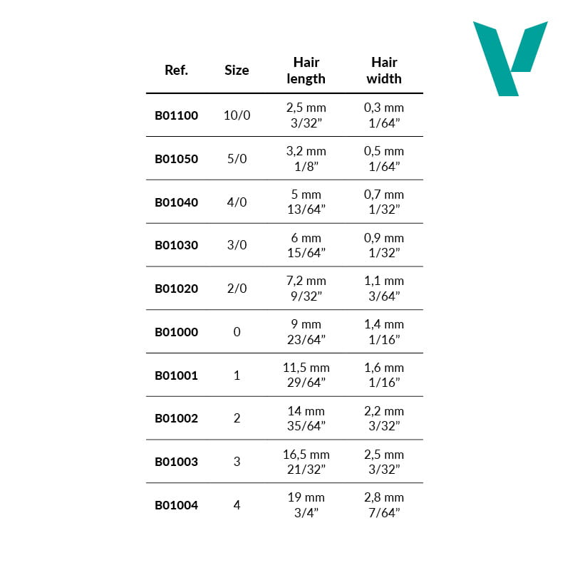 | Grubość włosia | 4/0 3/0 2/0 |
