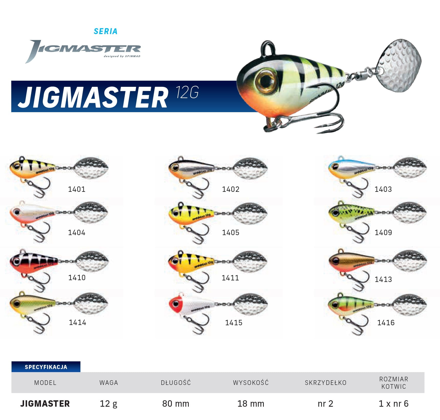 Przynęty Spinmad Jigmaster to wirujące ogonki zaprojektowane do łowienia szczupaków. Zastosowanie nowej technologii i materiałów pozwoliło na powiększenie wabików do ulubionych szczupaczych rozmiarów nie zwiększając ich wagi. Dzięki temu wabiki doskonale spisują na "szczupakowych" miejscówkach.