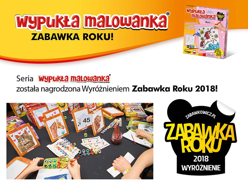 - Seria Wypukła Malowanka – Zestaw Kreatywny została nagrodzona Wyróżnieniem Zabawka Roku 2018.
