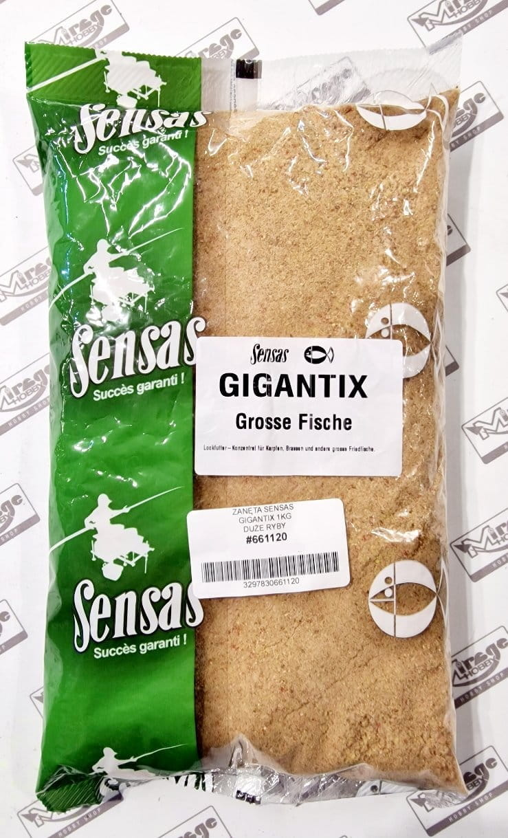 Zanęta Sensas Gigantix jest odpowiednia dla karpi, leszczy, dużych płoci, jazi i leszczów. Ma silne wiązanie, dzięki czemu nadaje się do stosowania w szybkiej wodzie. Zawiera żółtą i czerwoną mąkę chlebową fluo i ogólnie ma stosunkowo grubą strukturę, co jest szczególnie interesujące w przypadku dużych ryb.