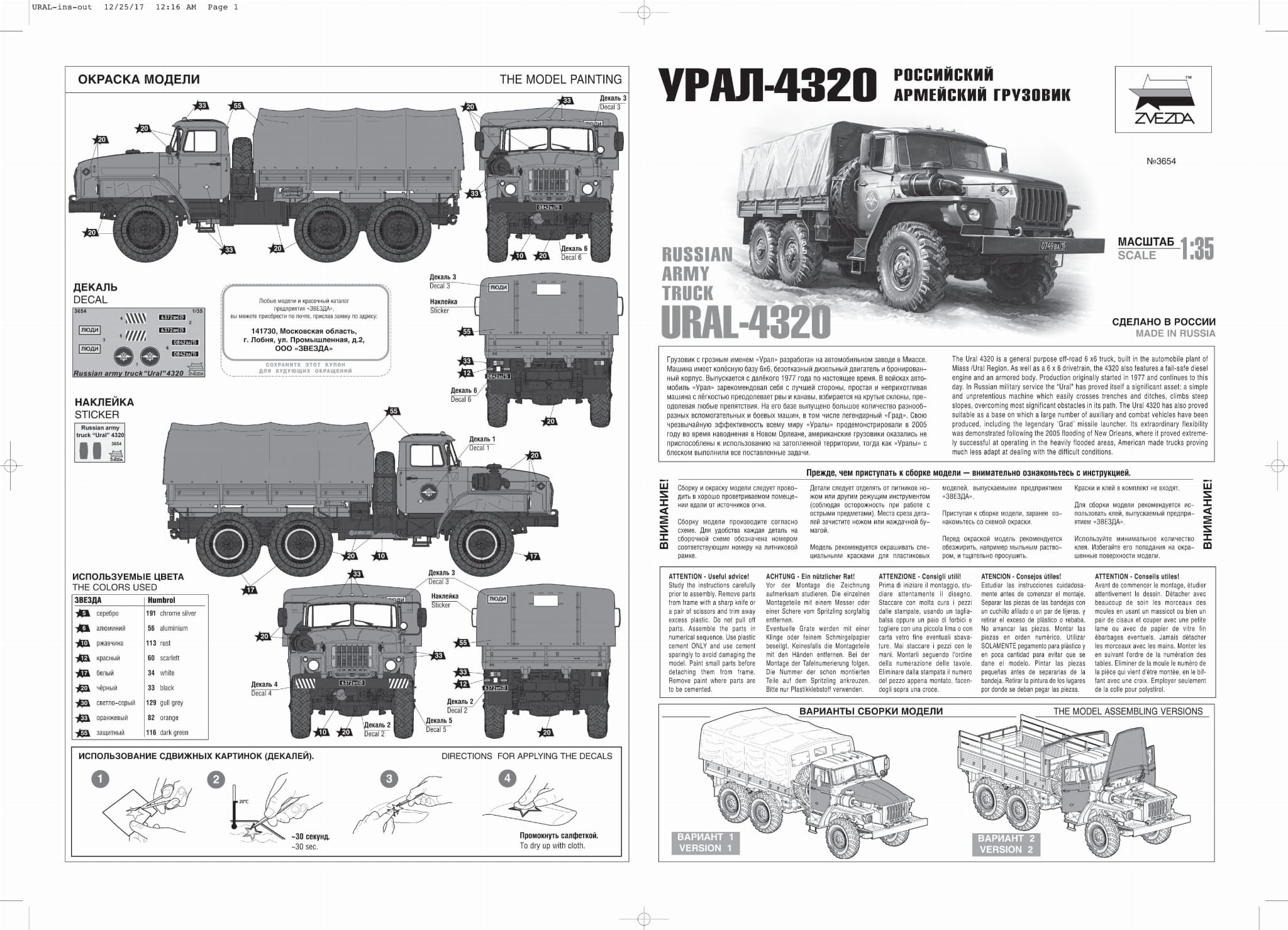 ZVEZDA 3654 1:35 Russian Army Truck URAL-4320
