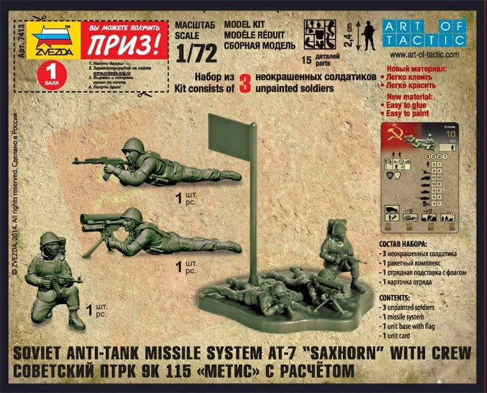 ZVEZDA 7413 1:72 Soviet Anti-Tank Missile System AT-7 "Saxhorn"