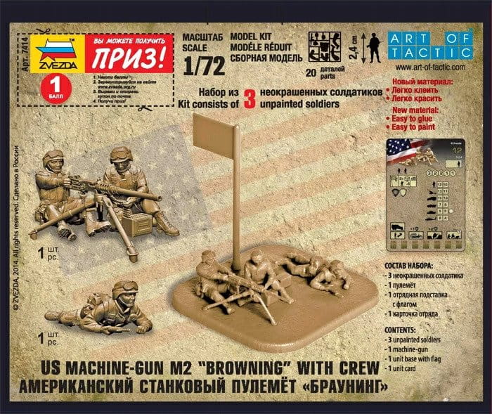 ZVEZDA 7414 1:72 US MACHINE GUN M2 BROWNING WITH CREW