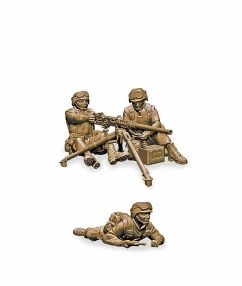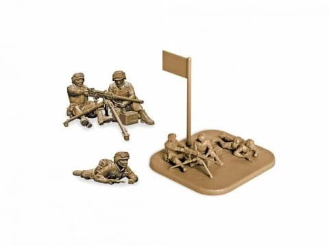 Zawartość: 3 niepomalowane figurki 1 karabin maszynowy - 1 podstawka z flagą - 1 karta jednostki